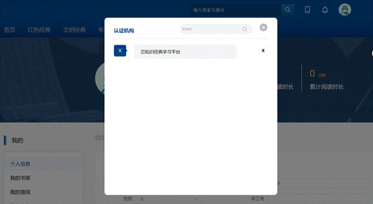 第三步:请先连接校园网WiFi,点击页面右上角头像-点击【认证机构】-选择【汉江师范学院】进行认证即可。
