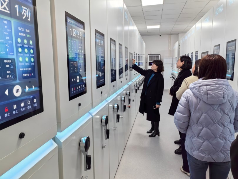 最后,党员同志们来到新建档案馆,参观考察了档案馆信息化中控室、展陈室、智能化密集档案库房、消毒室等专业化场所,现场交流了空间布局、文化墙设计等工作经验。党员同志们纷纷表示,今天参观新建档案馆收获颇多,尤其档案馆的空间布局与功能划分、文化墙和密集档案库房等专业化场所的建设,为图书馆今后空间优化、文化氛围营造、专业化书库改造等提供了良好借鉴。
