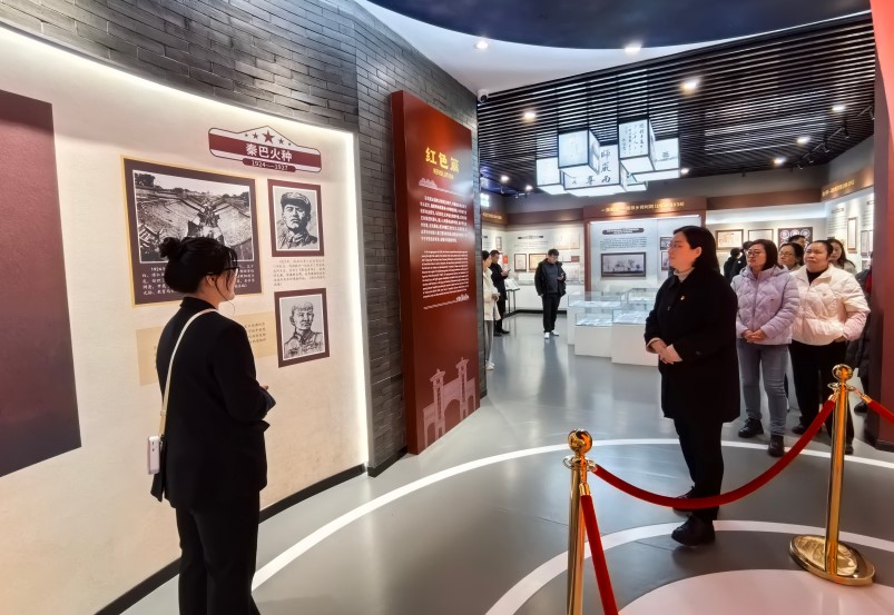 随后,在讲解员的带领下,党员同志们来到校史馆,深入学习了学校筚路蓝缕、克难奋进的122年发展历史,尤其是学校因支持国家有关建设,先后六次迁建的艰辛历程,让每一位党员同志无不被老一辈汉师人舍小家为国家、顾全大局的奉献精神所深深感动。在“红色篇”展区,党员们驻足良久,认真聆听何世昌、燕若痴等早期红色校友在革命战争年代不畏艰险、投身革命的感人事迹,无不深刻感受到蕴含其中的红色基因,从中汲取奋进力量,进一步坚定校史自信,切实增强树立和践行正确政绩观的政治自觉、思想自觉、行动自觉。